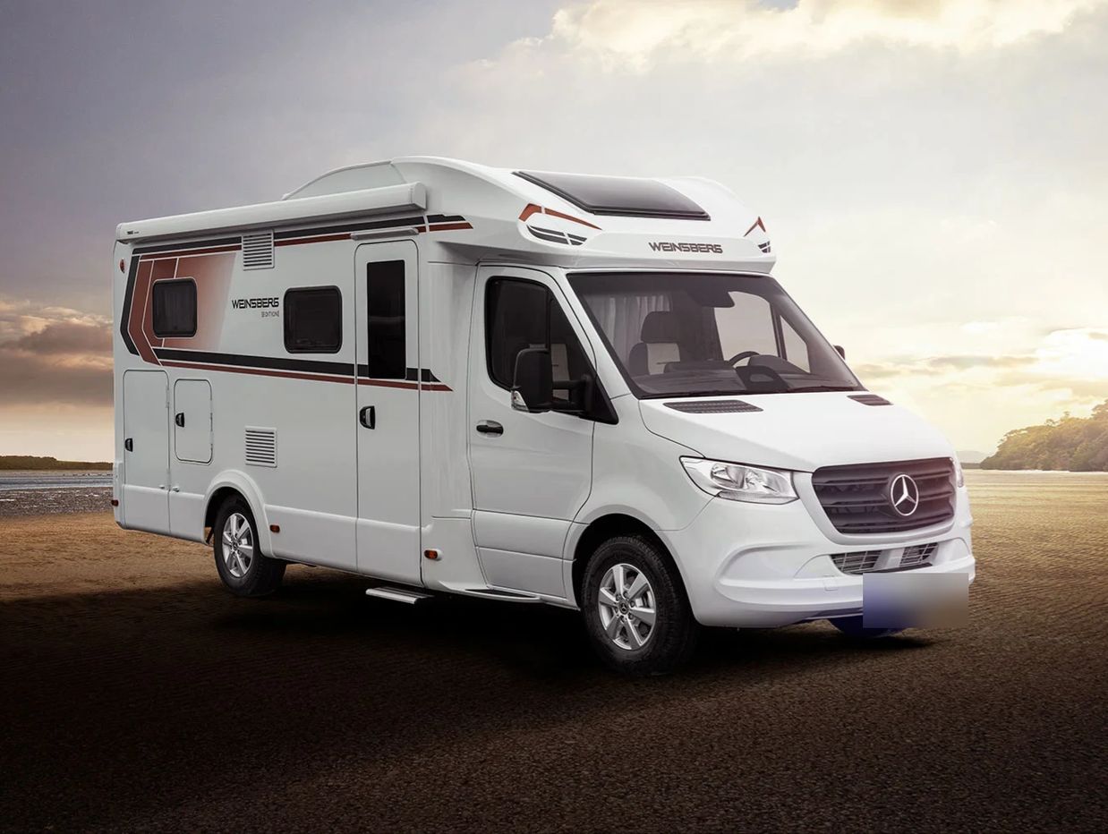 Teilintegriertes Wohnmobil auf Mercedes-Basis mit hochwertigem Design und Komfort.